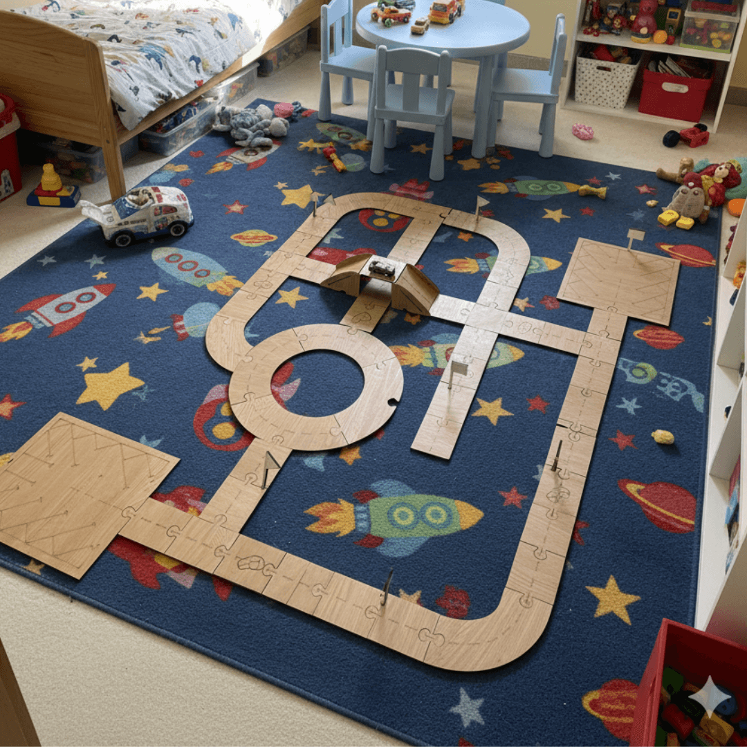 خلي طفلك يعيش تجربة لعب مختلفة تماماً مع مسار السيارات الخشبي التفاعلي. لعبة آمنة، ممتعة، وتطوّر مهاراته بطريقة طبيعية بلا ما يحس.